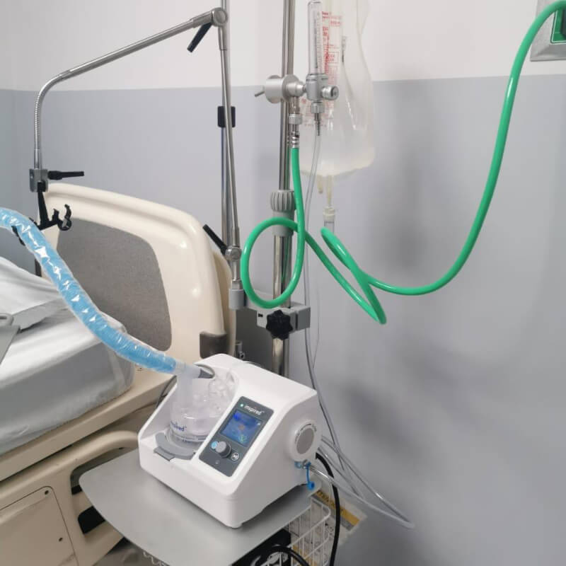 Alquiler de equipos de oxigenoterapia de alto flujo, tecnología que administra mezclas precisas de oxígeno humidificado a alta velocidad. Recomendado para pacientes con insuficiencia respiratoria moderada o severa, como en casos de EPOC, neumonía o COVID-19.